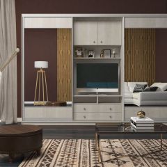 Шкаф-купе Валерия с нишей под ТВ 2800 ЛДСП/Зеркало/ЛДСП (Монорельс) ЛДСП 2 кат.