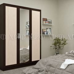 Красивая классическая модель трёхстворчатого шкафа Фиеста прекрасно впишется в интерьер спальни или гостиной. Центральная створка у модели – зеркальная, под ней находятся два выкатных ящика. Внутренняя комплектация состоит из отделений с хромированными штангами и зоны с полками для хранения трикотажа или белья. Шкаф выполнен в комбинации цветов венге и лоредо.